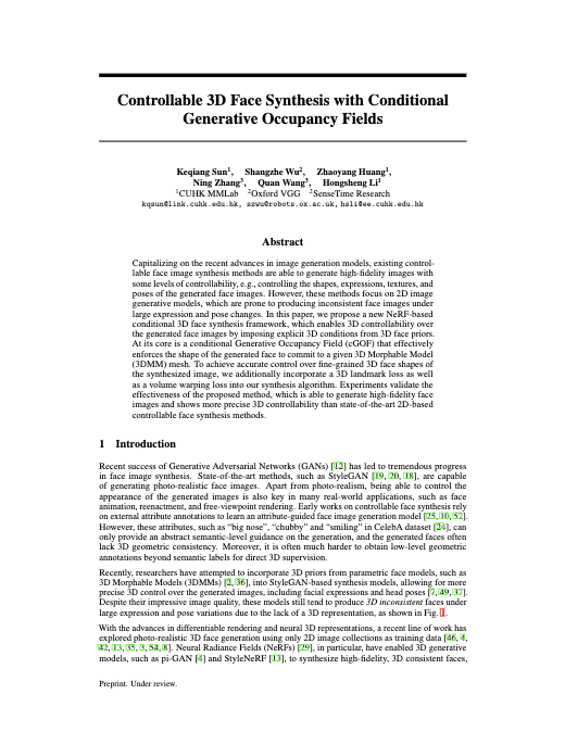 title = {Controllable 3D Face Synthesis with Conditional Generative Occupancy Fields},